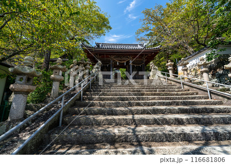初秋の坂越 大避神社の石段と随神門 兵庫県赤穂市