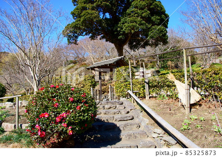 山茶花と庭門