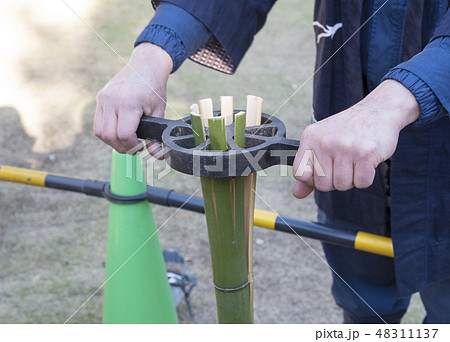 竹を等分に割るための竹割(菊割)