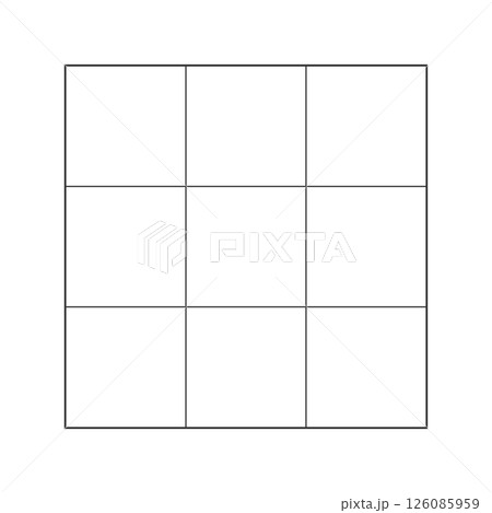 9マスに分割した正方形のグリッド素材 - 3×3 のフレームのシンプルな表組みや図のテンプレート