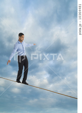 Man balancing on tightrope, studio shot