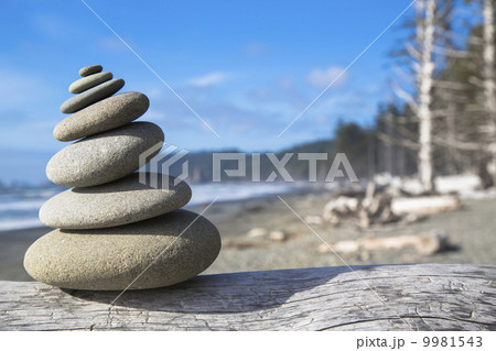 A pile of balancing smooth beach rocks near Rialto Beach, Olmpic national park, in Washington, USA