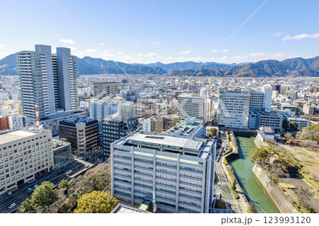 静岡市、静岡県庁富士山展望ロビーからの眺め(駿府城坤櫓方面)