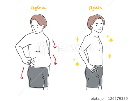 垂れて広がった大きなピーマン尻とスリムなお尻のイラスト 比較・ビフォーアフター