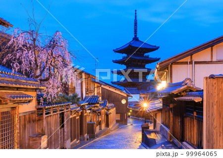 京都法観寺_桜咲く安寧坂と八坂の塔の絶景