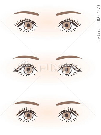 眼瞼下垂 両眼 女性 顔 目 眠たい まぶた 下垂 眼科 症例 イラスト