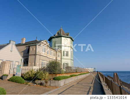 朝の神戸舞子公園 孫文記念館と明石海峡大橋