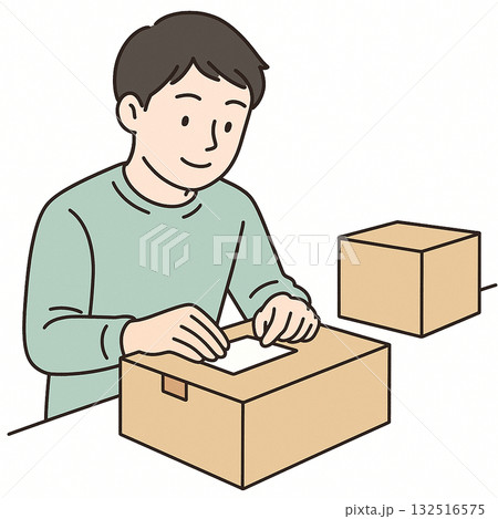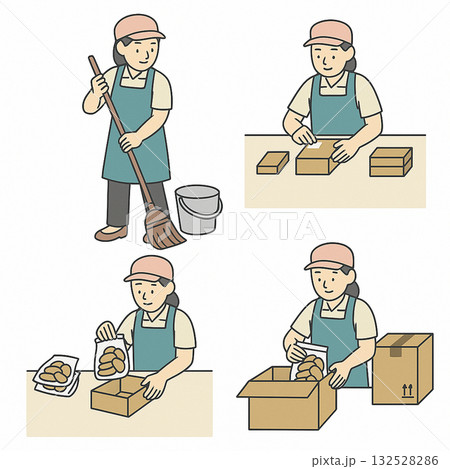 就労支援 職業訓練 軽作業(清掃・シール貼り・箱詰め)のイラスト