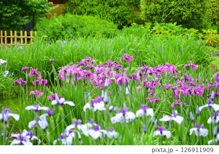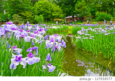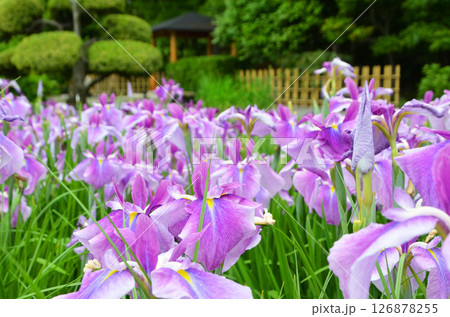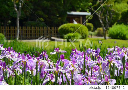 大阪 ハナショウブが咲き誇る城北菖蒲園の風景