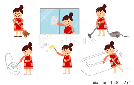 掃除をする女性 セット