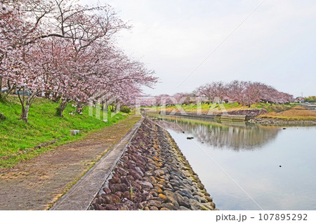 福岡県豊前市の花見スポット岩丸川堤防桜並木