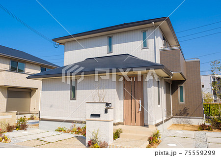 青空とモデルハウス 新興住宅地 住宅地イメージ