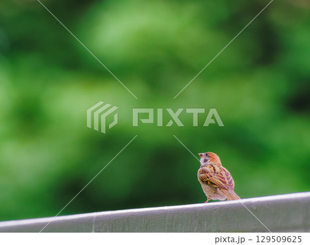 【岩手県盛岡市/岩手公園】城跡のフェンスでひと休みするすずめさん