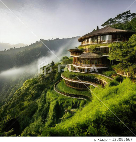 A stunning Japanese pagoda set amidst the serene backdrop of Matsumoto. The multi-tiered structure features traditional architecture with curved roofs and intricate wooden detailing