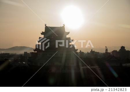 逆光を浴びて浮かび上がる名古屋城のシルエット