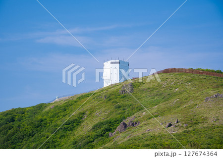 日本海に向けて警戒監視を行う佐渡島のガメラレーダー