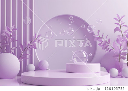 Purple Podium Stage with Soap Bubbles , Aesthetic Product Showcase