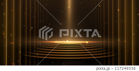 Elegant golden scene vertical glowing with lighting effect sparkle on black background. Template circle podium premium award design.
