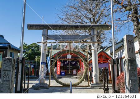 東京都 葛飾区 葛飾氷川神社 鳥居と茅の輪