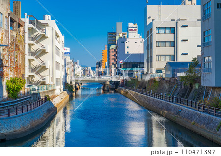 和歌山市 城北橋から市堀川川沿いの街並みを望む