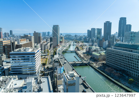 大阪堂島浜の高層ビルより中之島、淀屋橋の景観
