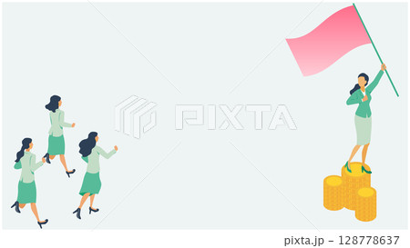 ビジネスリーダーとチームの成功・目標達成のコンセプトイラスト