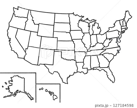 アメリカ合衆国の地図(線画、州境線入り)ブラック