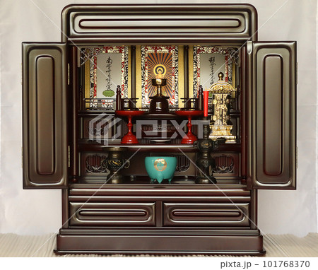 小さい仏壇に飾られた浄土真宗本願寺派(西本願寺)の仏具 都会での供養のイメージ4
