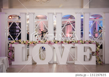 Creative love display at a wedding venue with elegant decor and floral arrangements