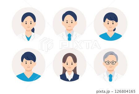 医者・看護師・医療事務の男女顔アイコンセット【人物ベクターイラスト素材】