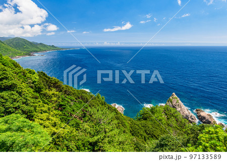春の青空と海 西部林道地域 世界自然遺産屋久島