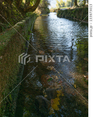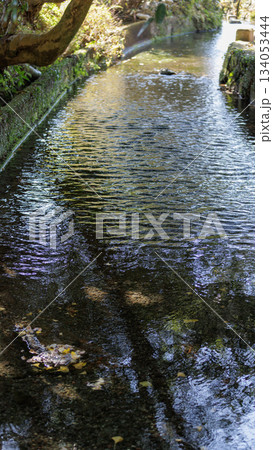 秋の終わりの水源からの清流