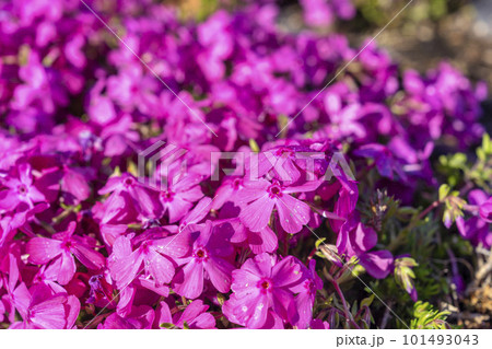 早朝の市貝町芝ざくら公園 青空と満開のシバザクラ 栃木県市貝町