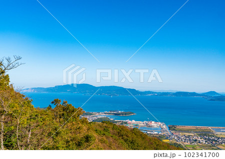 【瀬戸内海国立公園】金甲山山頂から見た製塩工場と小豆島 岡山県岡山市・玉野市