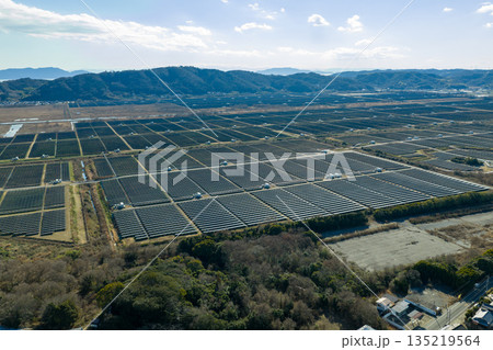 冬の岡山県牛窓 錦海塩田跡地に広がる国内最大級の瀬戸内Kirei太陽光発電所空撮