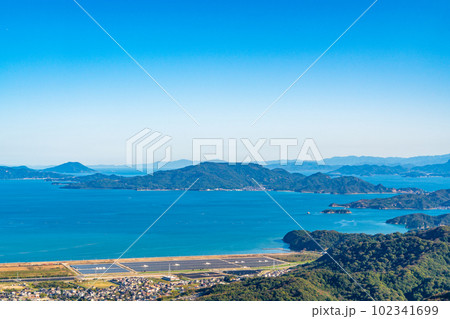 【瀬戸内海国立公園】金甲山山頂から見た塩田跡地と瀬戸内海の島々と四国2 岡山県岡山市・玉野市