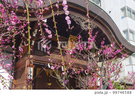 天阪天満宮の境外末社 川崎東照宮 神輿蔵 満開の梅の花