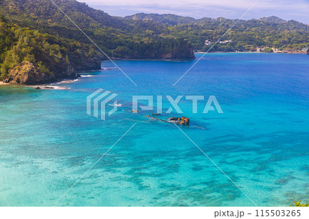 小笠原 父島の境浦海岸 沈没船の濱江丸(ひんこうまる)