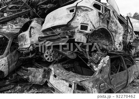 Irpin, Bucha district, Ukraine - war-destroyed cars