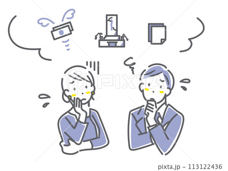終い方について話し合う老夫婦 セット イラスト素材