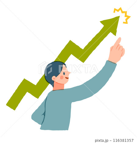上昇する矢じるしと指さす男性 人物