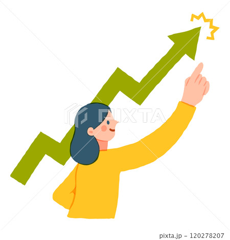 上昇する矢じるしと指さす女性のイラスト