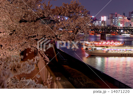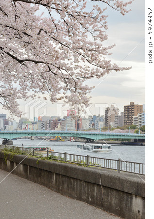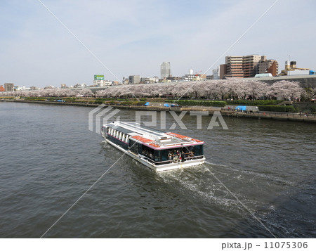 桜が咲く春の隅田川(墨田区立隅田公園と水上バス)