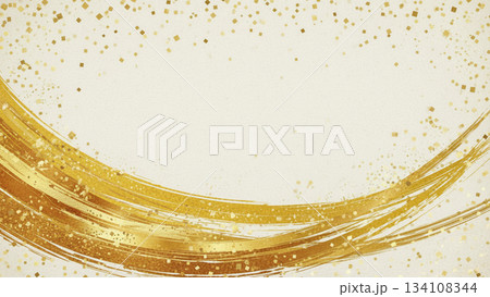 和紙風のクリーム色に金色の筆で描かれた流線背景