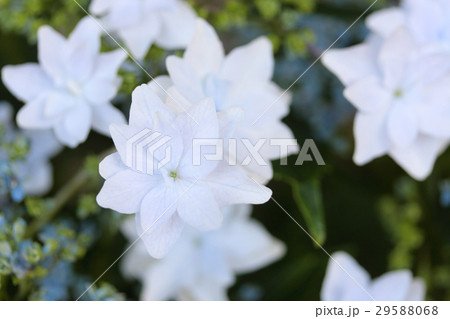 墨田の花火(額紫陽花)の花が清楚で美しい