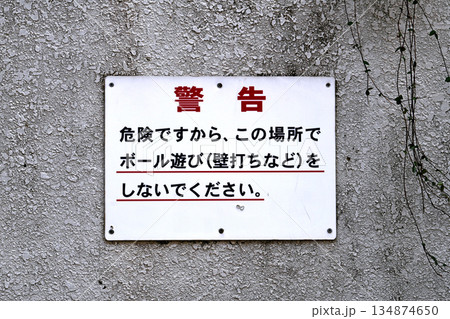 日本の横浜都市景観警告 危険ですから、この場所でボール遊び(壁打ちなど)をしないでください