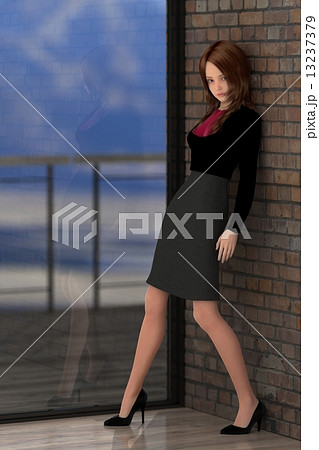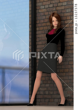 レンガの壁でポーズするモデル体型の女性 3DCG イラスト素材