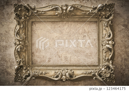 大理石の背景に掛けられたアンティークな額縁