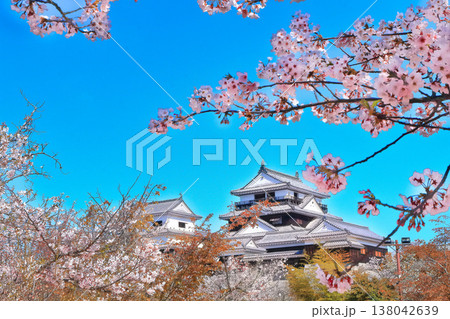 【愛媛県】桜咲く松山城の夕景(現存天守)