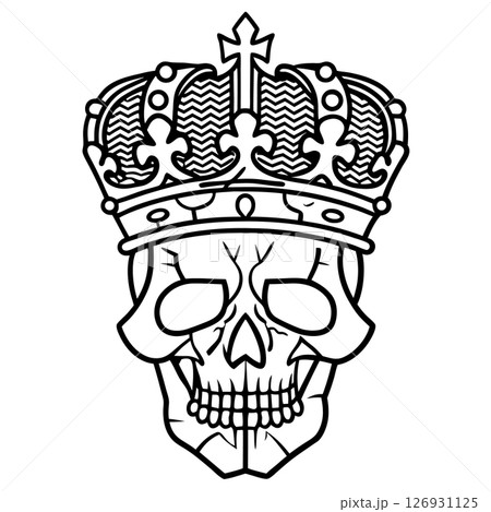 Royal crowned skull illustration monochrome human skull with ornate crown, detailed line art, gothic tattoo motif, AI Generative